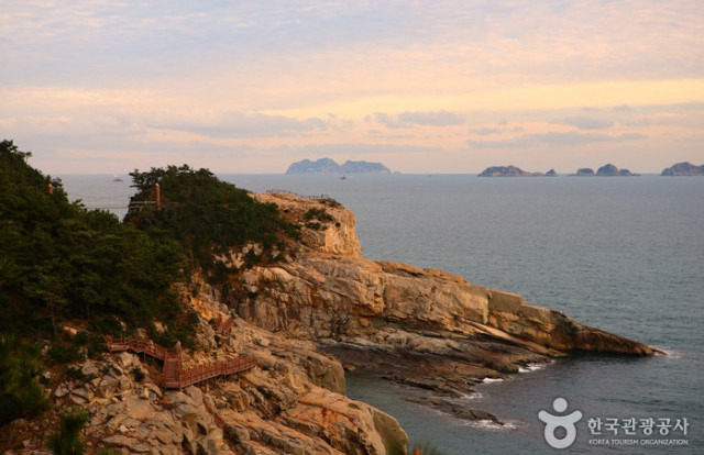 사진에서는 섬의 아름다운 해안선을 감상할 수 있습니다. 이곳은 산책로가 잘 조성되어 있어, 걷는 것만으로도 힐링이 되는 장소입니다.