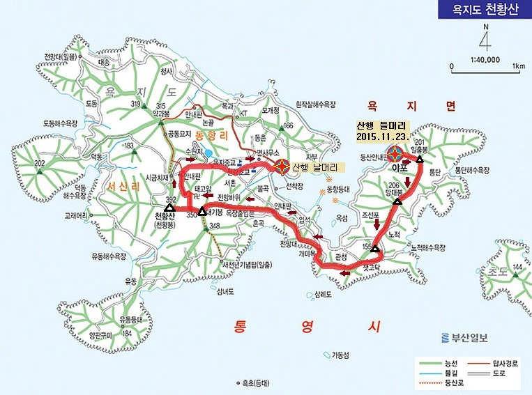 사진에서는 욕지도 지도를 통해 주요 관광지를 쉽게 찾아볼 수 있습니다.