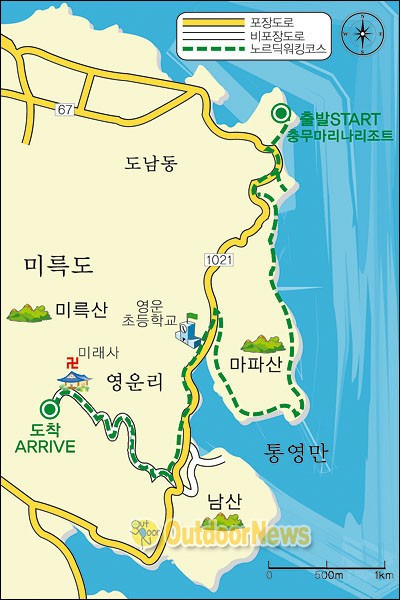 위의 지도는 미륵산 등산로의 모습입니다. 주요 명소와 경치 좋은 포인트가 표시되어 있어, 하이킹 계획을 세우는 데 많은 도움이 될 것입니다.