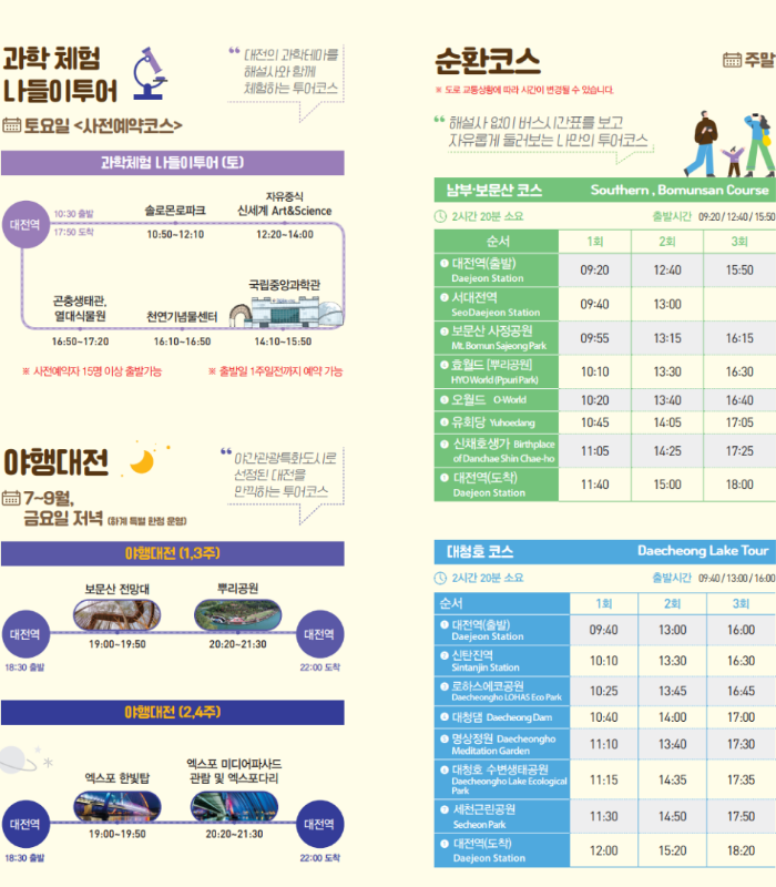 대전 시티투어의 다양한 코스를 안내하는 포스터입니다.
