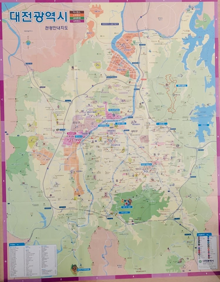 대전의 관광지와 일정을 정리한 상세 지도입니다.
