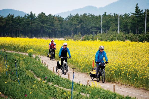 둘째, 섬 내에서의 이동은 자전거를 이용하는 것이 편리하지만, 안전 장비를 착용하는 것을 잊지 말아야 합니다.