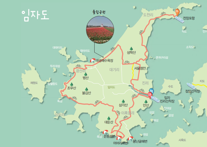 또한, 임자도에는 자전거 도로가 잘 조성되어 있어 자전거를 타고 섬을 둘러보는 것도 추천합니다. 특히, 자전거 도로 주변에는 아름다운 유채꽃밭이 펼쳐져 있어 사진 찍기 좋은 장소로 유명합니다.