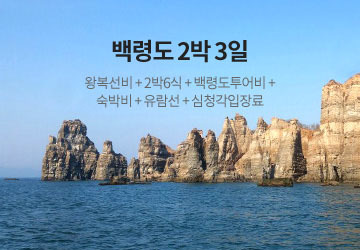 백령도를 여행하는 방법 중 하나는 패키지 여행을 이용하는 것입니다. 여러 여행사에서 제공하는 패키지 상품이 있으며, 보통 1박 2일 또는 2박 3일 일정으로 구성되어 있습니다. 예를 들어, (주)백령여행사에서는 1박 2일 패키지를 135,000원부터 제공하고 있습니다. 패키지에는 숙소, 식사, 관광지 입장료 등이 포함되어 있어 편리합니다.