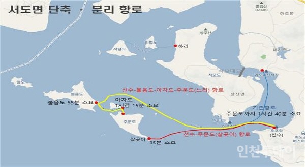 주문도에 가기 위해서는 인천의 선수선착장에서 여객선을 이용해야 합니다. 여객선은 정기적으로 운행되며, 소요 시간은 약 40분 정도입니다.