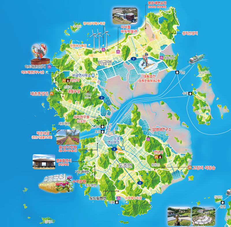도초도는 자연의 아름다움과 다양한 즐길 거리가 가득한 곳입니다. 이곳에서의 여행이 여러분에게 특별한 추억이 되기를 바랍니다.