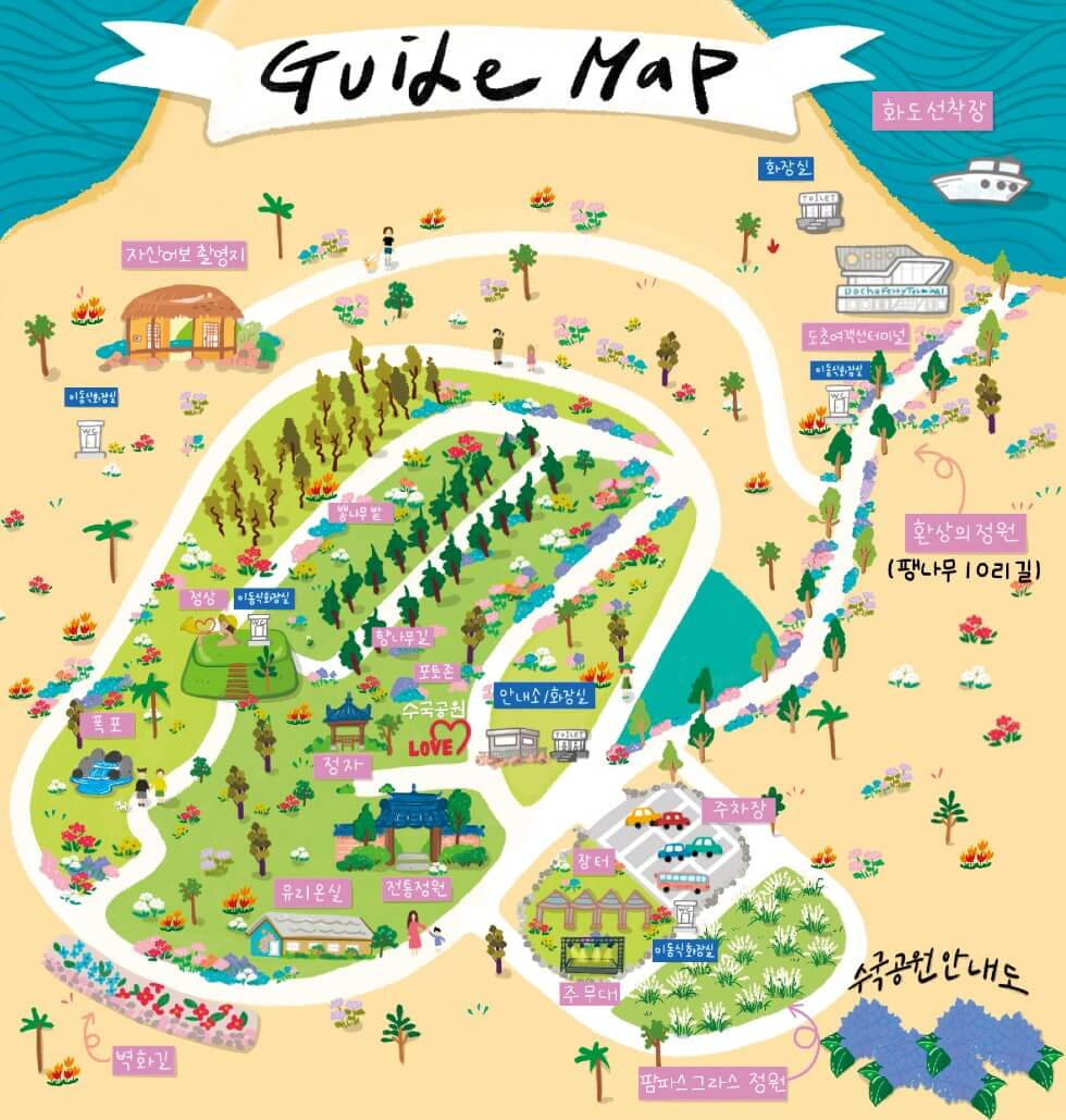 1. 환상의 정원 : 도초도의 대표적인 관광지로, 수국과 팽나무가 어우러진 아름다운 정원입니다. 이곳은 사진 촬영 명소로도 유명하여, 많은 관광객들이 방문합니다.